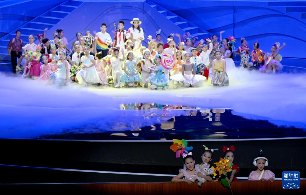 主題演出以“我和祖國(guó)一起成長(zhǎng)”為主題,分為“生而向陽(yáng)”“燦爛時(shí)光”“一路綻放”“春風(fēng)雨露”“同心圓夢(mèng)”五個(gè)篇章。演出序幕拉開(kāi),在璀璨的舞臺(tái)上,孩子們身著五彩斑斕的民族服飾,手牽手快樂(lè)地起舞,共同編織出一幅絢麗多彩的民族團(tuán)結(jié)畫(huà)卷。音樂(lè)舞蹈劇《追夢(mèng)·傳承》以展現(xiàn)時(shí)代的變遷,激勵(lì)廣大青少年銘記歷史、發(fā)奮圖強(qiáng)、建設(shè)祖國(guó);情景節(jié)目《融畫(huà)小精靈》將華陰老腔、皮影戲、兒童舞蹈等藝術(shù)元素跨界融合,展現(xiàn)出中華優(yōu)秀傳統(tǒng)文化的獨(dú)特魅力;情景秀《目望蒼穹》將香港青少年的武術(shù)表演與內(nèi)地青少年的流行舞蹈相結(jié)合,贏得觀眾陣陣掌聲……主題演出通過(guò)音樂(lè)情景劇、民族歌舞、多媒體戲劇表演、國(guó)風(fēng)時(shí)裝秀、京劇新編等豐富多彩的藝術(shù)形式,講述了新時(shí)代青少年兒童與祖國(guó)一起成長(zhǎng)的故事。