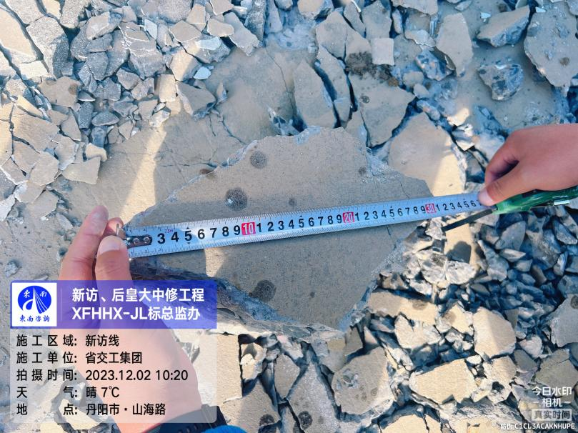 針對這種少見的施工工藝,第六監理部副總親自帶領總監辦全體人員在施工前熟悉圖紙,上網查找類似工程監理經驗,結合設計要求組織崗前培訓,著重要求進行施工過程中的效果檢查;施工過程中六部項目經理帶隊工作組現場指導,對監理工作提出了具體要求。總監辦總監代表、專監、監理員全過程旁站,對破碎粒徑加大頻率的量測,頂面<7.5cm、上部<22.5cm、下部<37.5cm均滿足要求,充分展現監理工作的細致化,得到了建設單位丹陽市綜合交通事業發展中心領導、項目管理組及第三方檢測的一致好評。