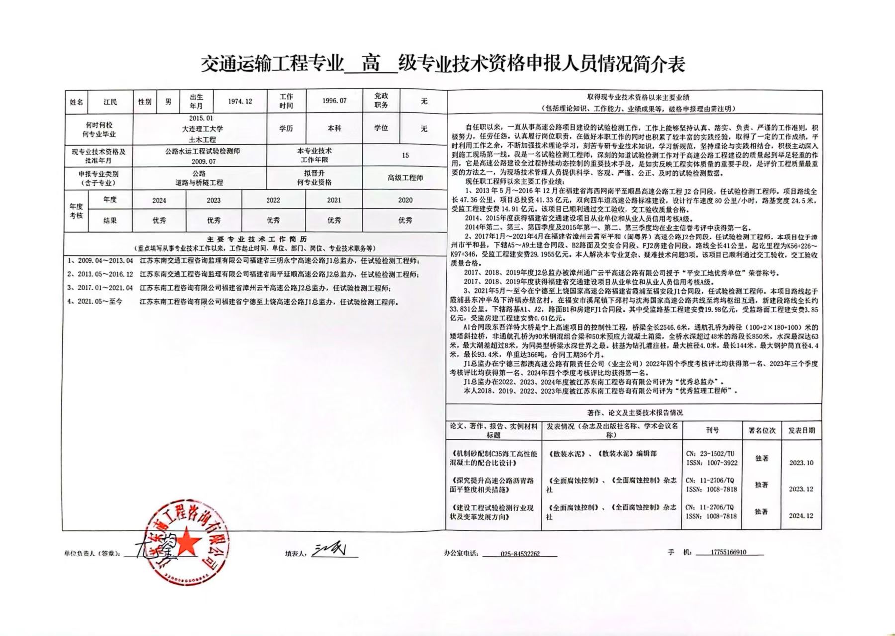 根據《江蘇省交通公路、水運工程專業工程師、高級工程師資格條件(試行)》規定,2025年度有江民同志擬申報江蘇省交通運輸廳交通公路工程(路橋)專業高級工程師。為體現公開、公平、公正原則,廣泛聽取群眾意見,現將擬申報名單予以公示。