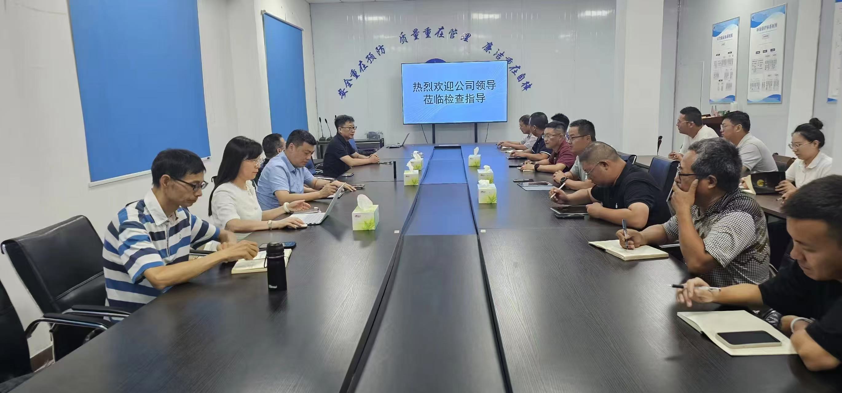 在總監辦會議室,慰問組與項目成員進行了親切座談??偙O陳濤匯報了項目進展、后續計劃及當前應對汛期、暑期的工作措施。